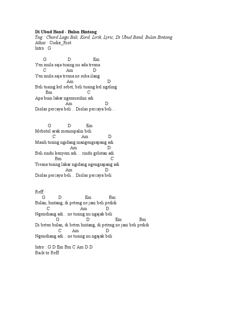 C -D G Em D G. Em D tusing ade rase ne care jani. 019 4WD Agustin Ary Kencana Ayu Setiati Baduda Bayu Cuaca Bintang Budi Arsa Dgo Vaspa DProtez Dek Ulik Dewi Carangsari Di Ubud n Band Dian Dipa N Band G-Pay Jhonz Join Kopi Joni Agung KIS Band Lain-lain Leeyonk Sinatra Lolot Made Gimbal Marco Band.