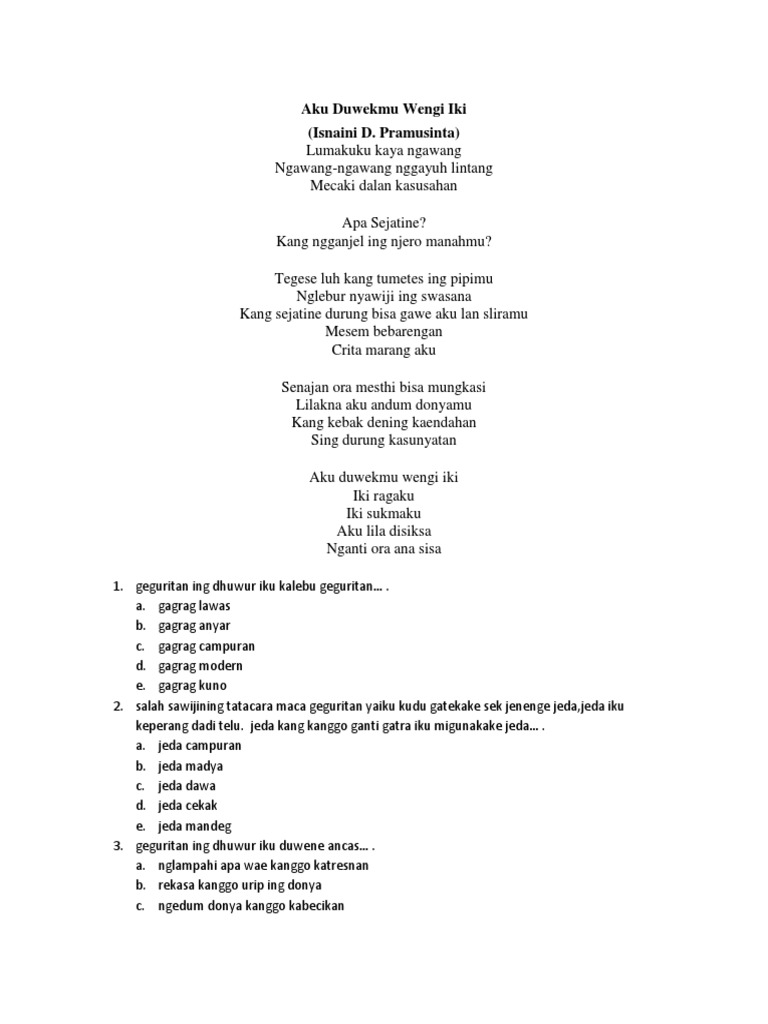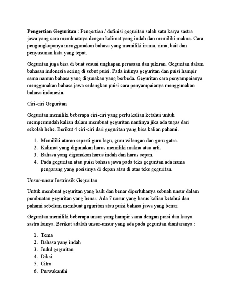 Sing Kalebu Unsur Batin Geguritan Yaiku Berbagai Unsur