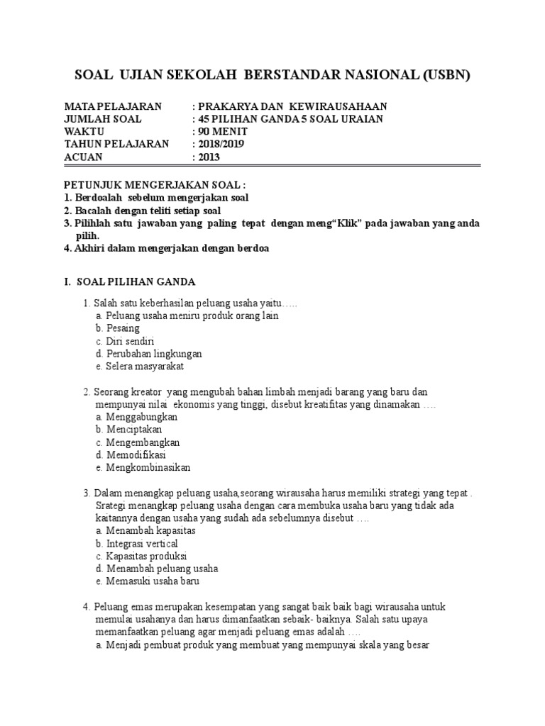 Soal kewirausahaan kelas 10 pilihan ganda dan jawabannya. Target usaha yang didalamnya terdapat kei. KARTU SOAL UJIAN NASIONAL SEKOLAH Standar Kompetensi Lulusan Pokok Materi Indikator NOMOR SOAL.